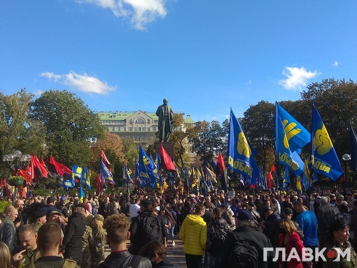 Кореспондент Главкома повідомляє з місця подій, що біля пам'ятника Тарасові Шевченку зібралося кілька сотень активістів, і люди продовжують прибувати до місця подій.