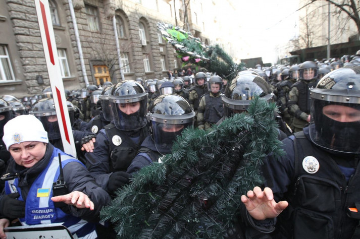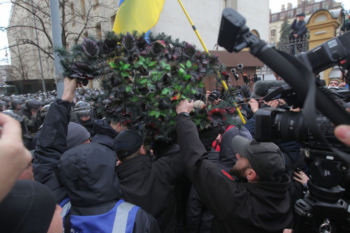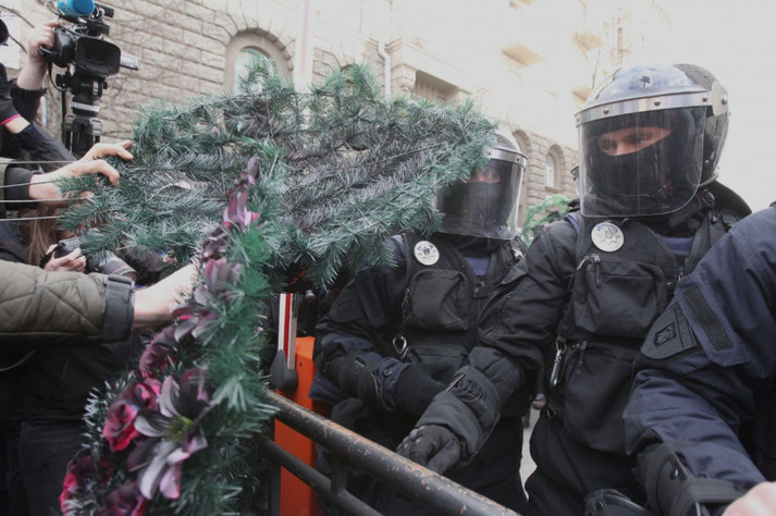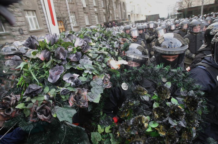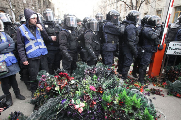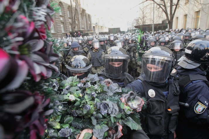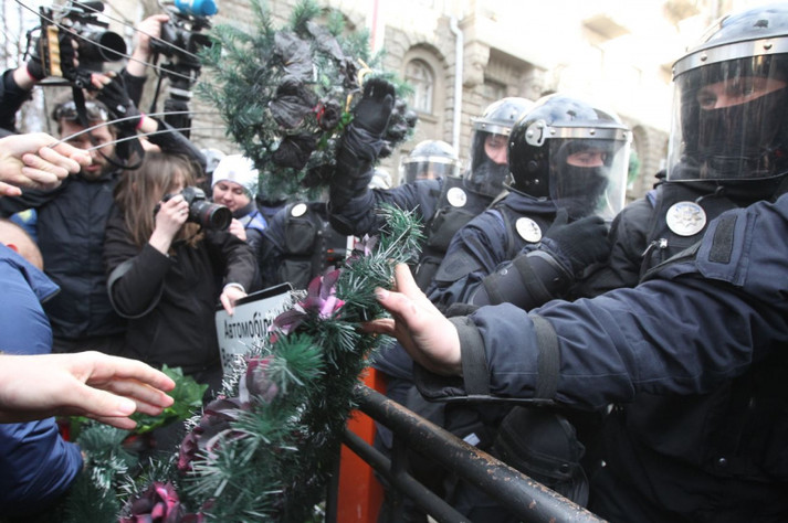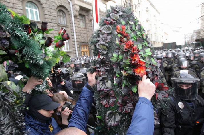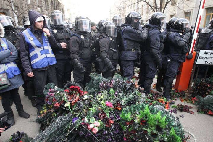 Після цього активісти закидали ряди силовиків траурними вінками і квітами.