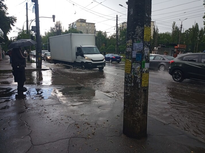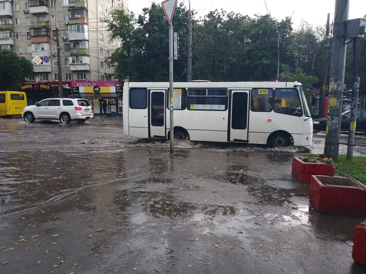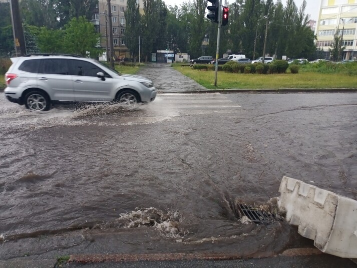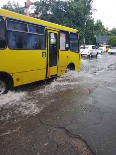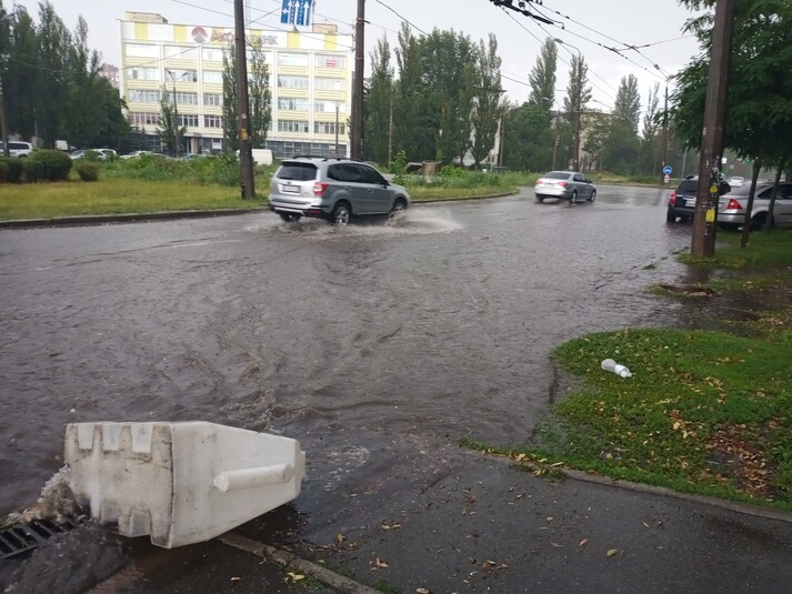 Не обійшлось і без підтоплень. У Подільському районі дороги залило водою.