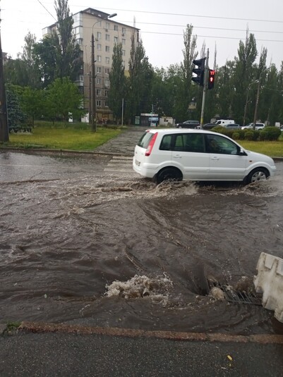 6 липня Київ та область накрили грозові зливи та сильний вітер. У деяких районах столиці через негоду було затоплено дороги та магазини.