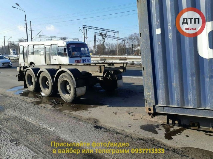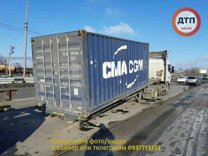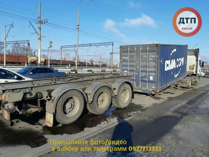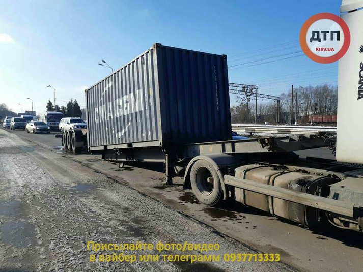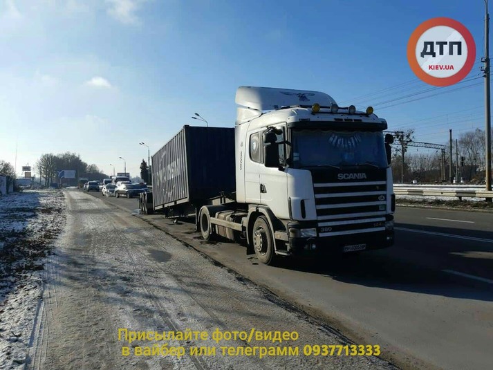 У Києві сталася дорожньо-транспортна пригода за участю фури. Як пише паблік dtp.kiev.ua, аварія сталася на Повітрофлотському шляхопроводі у напрямку від моста Жуляни в сторону аеропорту.