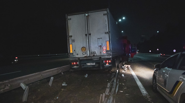 У Києві п’яний далекобійник на фурі з алкоголем зніс відбійник (фото, відео)