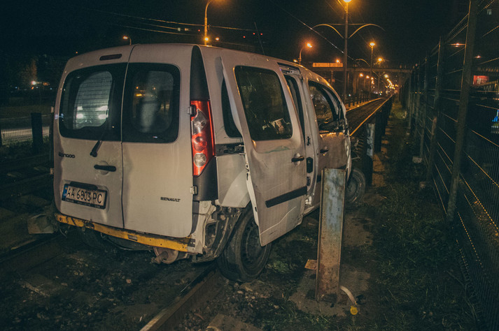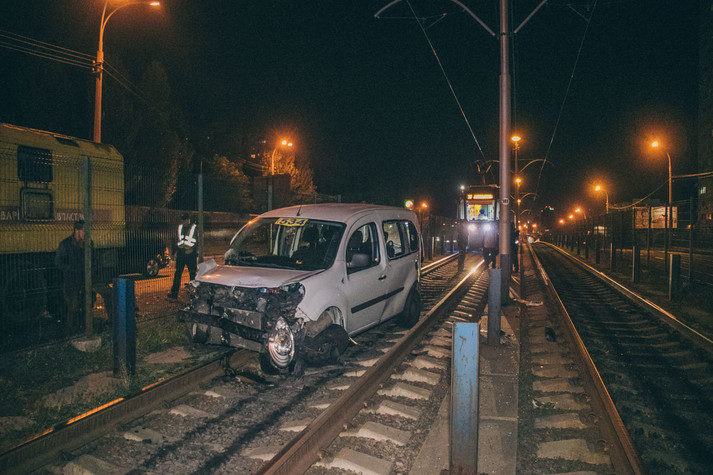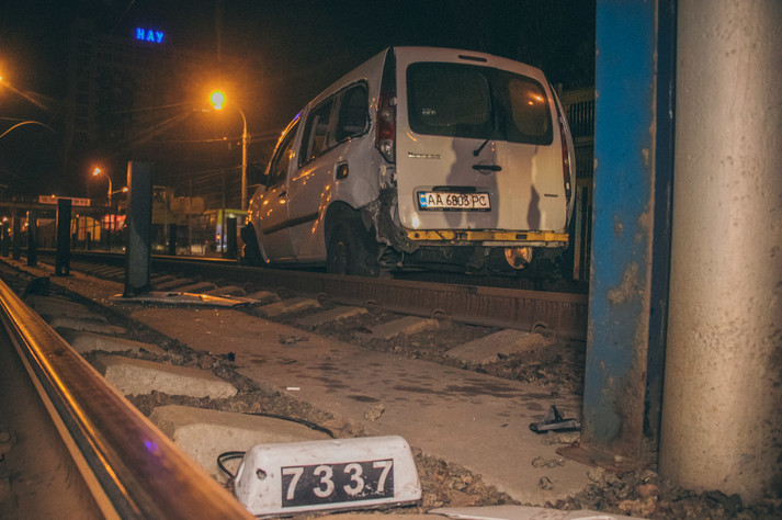 У Києві п’яний таксист врізався у маршрутку і вилетів на трамвайні колії (фото, відео)