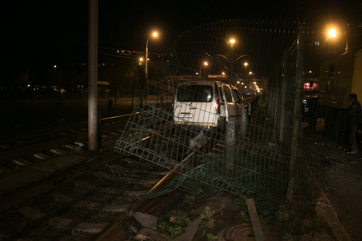 За словами очевидців, водій таксі Renault на високій швидкості не впорався з керуванням, по дотичній врізався в задню частину маршрутки і, проломивши огорожу лінії швидкісного трамвая, вилетів на колії. Чоловік, який керував таксі, був п'яний. Тест на драгер показав 2.50 проміле алкоголю в крові.