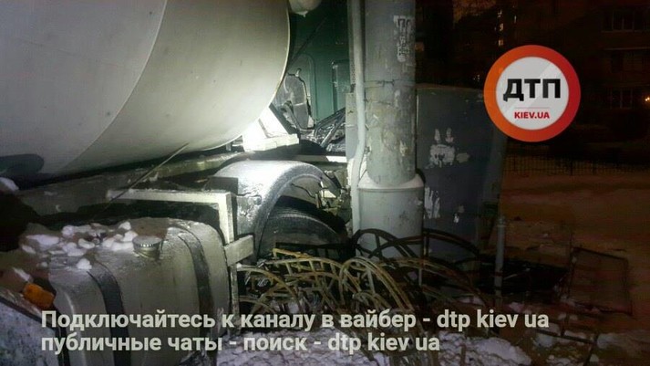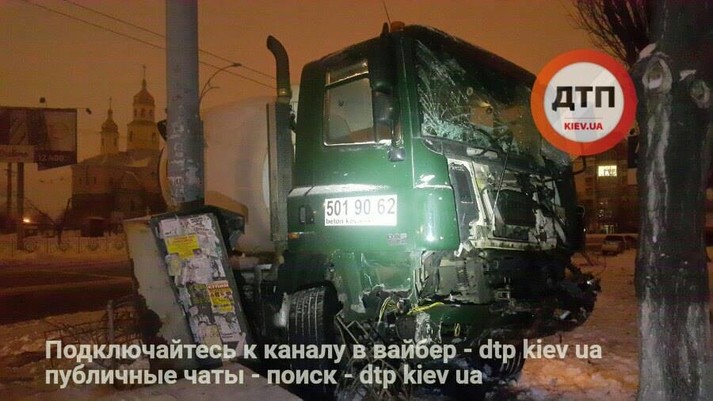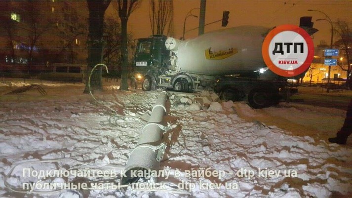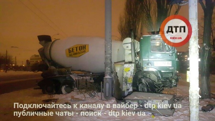 У Києві п'яний водій бетоновоза трощив на своєму шляху автомобілі і стовпи