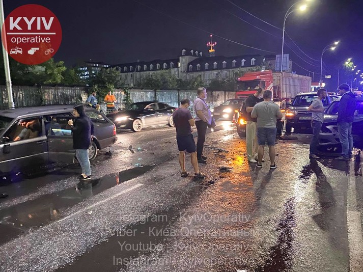 У понеділок, 22 червня, ввечері на вул. Набережно-Луговій у Києві сталася серйозна ДТП за участі чотирьох автомобілів.