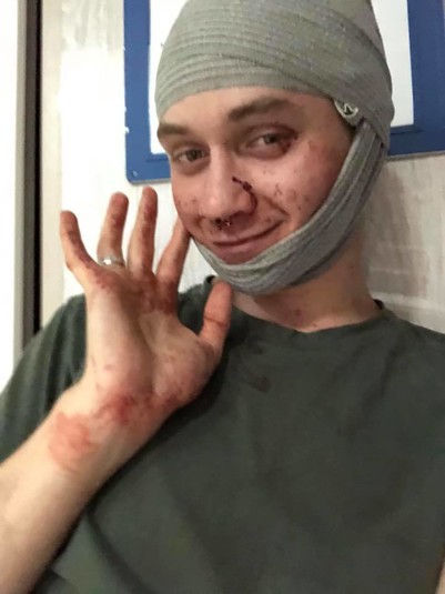 «Їм (нападникам – ред.) не сподобався мій септум (пірсинг – ред.) в носі, мої джинси, вино замість пива, тому що тільки пиво - чоловічий напій, і ще багато чого. Ще їм бачилося, що ми цілувалися, на що я взагалі випав в осад. З фразою «ну че, [геї], подобається в [дупу кохатися]?». Один з них почав бити. [Геї] ми чи ні - їм було [все рівно]. Було боляче. Їх було 5 або 6 чоловік, я погано пам'ятаю. Пам'ятаю, що на одному була балаклава і був пістолет в руках - сподіваюся, фейковий. Втекти ми не могли - пістолет був спрямований на мене, а дорогу вони перегородили», - розповів постраждалий.