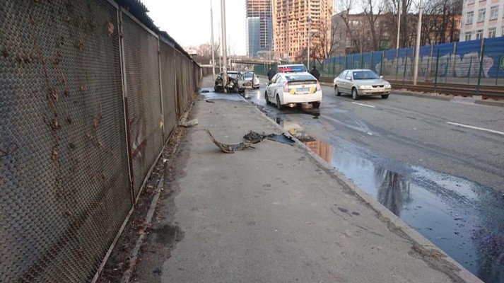 У Києві Renault влетів у стовп і згорів дотла (фото)
