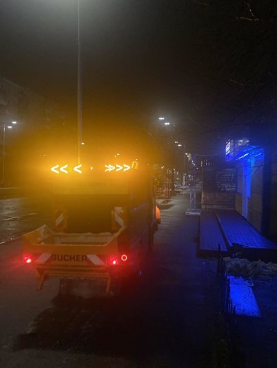Працює і техніка для обробки доріг і мостів протиожеледними засобами. Посилена увага до стану покриття на шляхопроводах, підйомах та спусках, покриття із бруківки, тротуарах. Нині задіяно 131 одиниця спецтехніки.