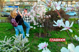 У Києві розпочався період цвітіння магнолій. Мешканці та гості столиці поспішають помилуватися великими біло-рожевими бутонами.