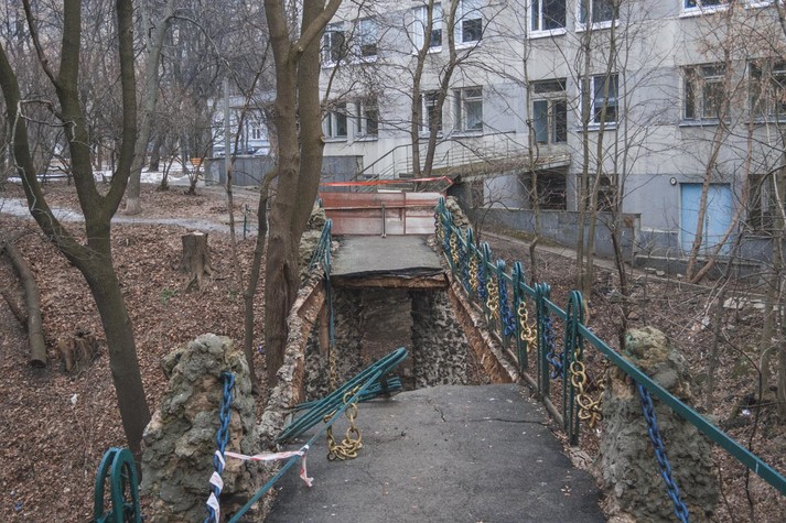 У Шевченківському районі столиці стався обвал пішохідного моста. Міст знаходиться на території Інституту педіатрії на вулиці Платона Майбороди, 8.