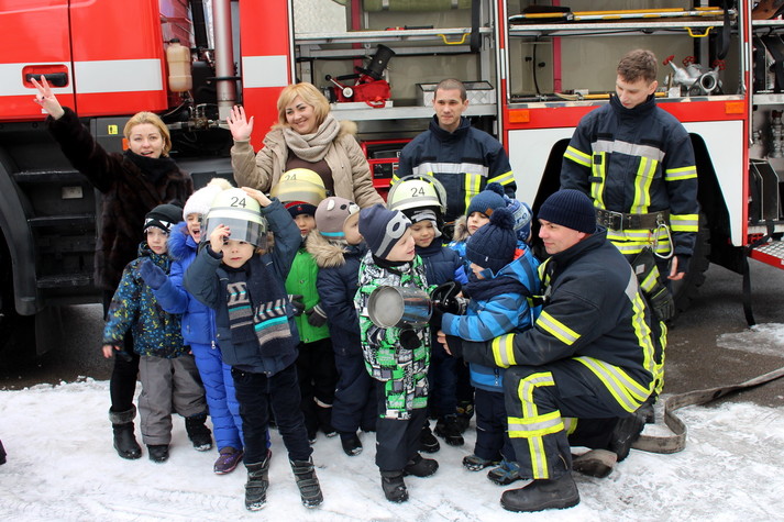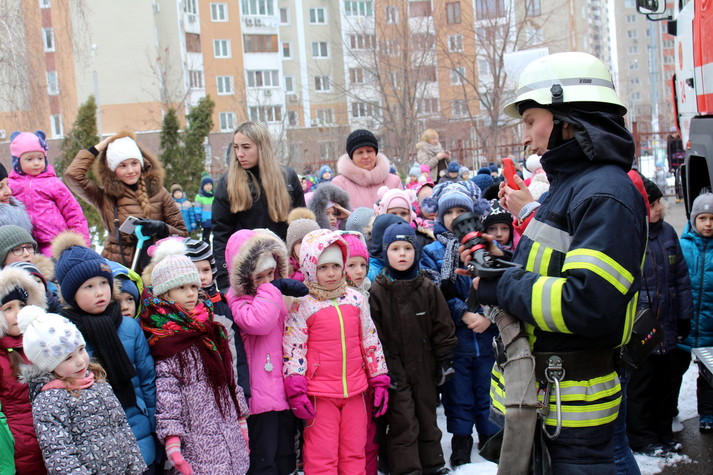 Також зазначається, що після розіграної сценки малеча мала змогу поближче оглянути пожежний автомобіль, пожежно-рятувальне обладнання та оснащення, приміряти бойовий одяг.