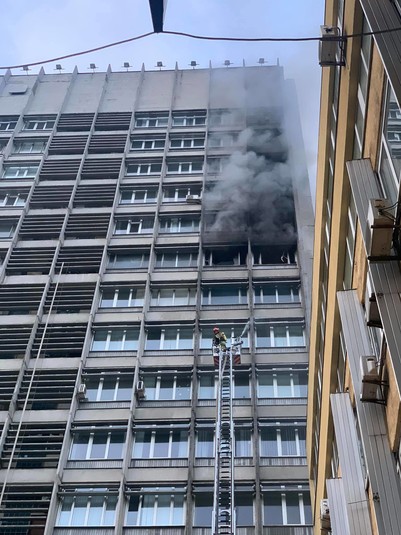 У центрі Києва горіла шістнадцятиповерхова будівля, де розташований офіс компанії Київпроекту.