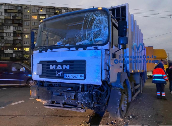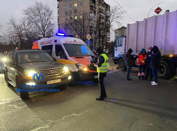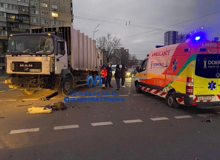 У Києві сміттєвоз протаранив «швидку», є потерпілі (фото, відео)