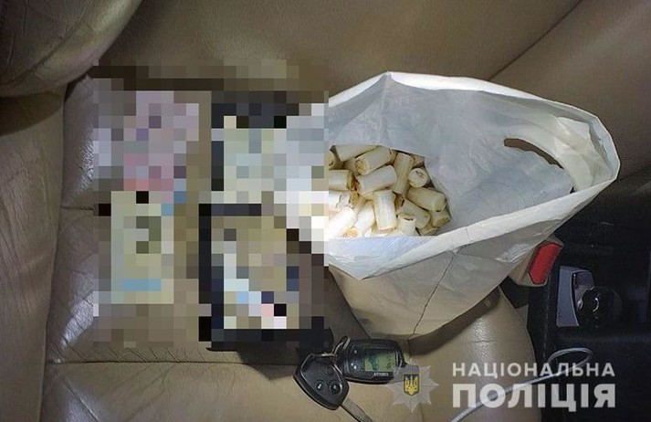 На Великій Кільцевій у Києві наряд полку поліції особливого призначення №1 помітив автівку з вимкненими фарами та зупинив для перевірки документів. Однак водій почав помітно нервувати, тому правоохоронці провели огляд автомобіля і виявили пакунок із невідомими речовинами.
