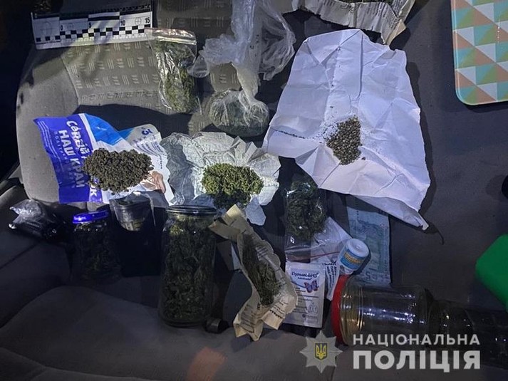 На вулиці Соляній у Шевченківському районі Києва наряд полку поліції особливого призначення № 2 помітив автівку з вимкненими фарами та зупинив для перевірки документів. У ході спілкування із чоловіком на задньому сидінні автомобіля правоохоронці помітили скляні банки, в яких була подрібнена речовина зеленого кольору.