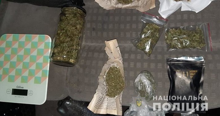 Правоохоронці вилучили у чоловіка п’ять згортків, три крафт-пакети, один поліетиленовий пакет та дві банки із речовиною рослинного походження, які у подальшому направили на проведення експертизи.