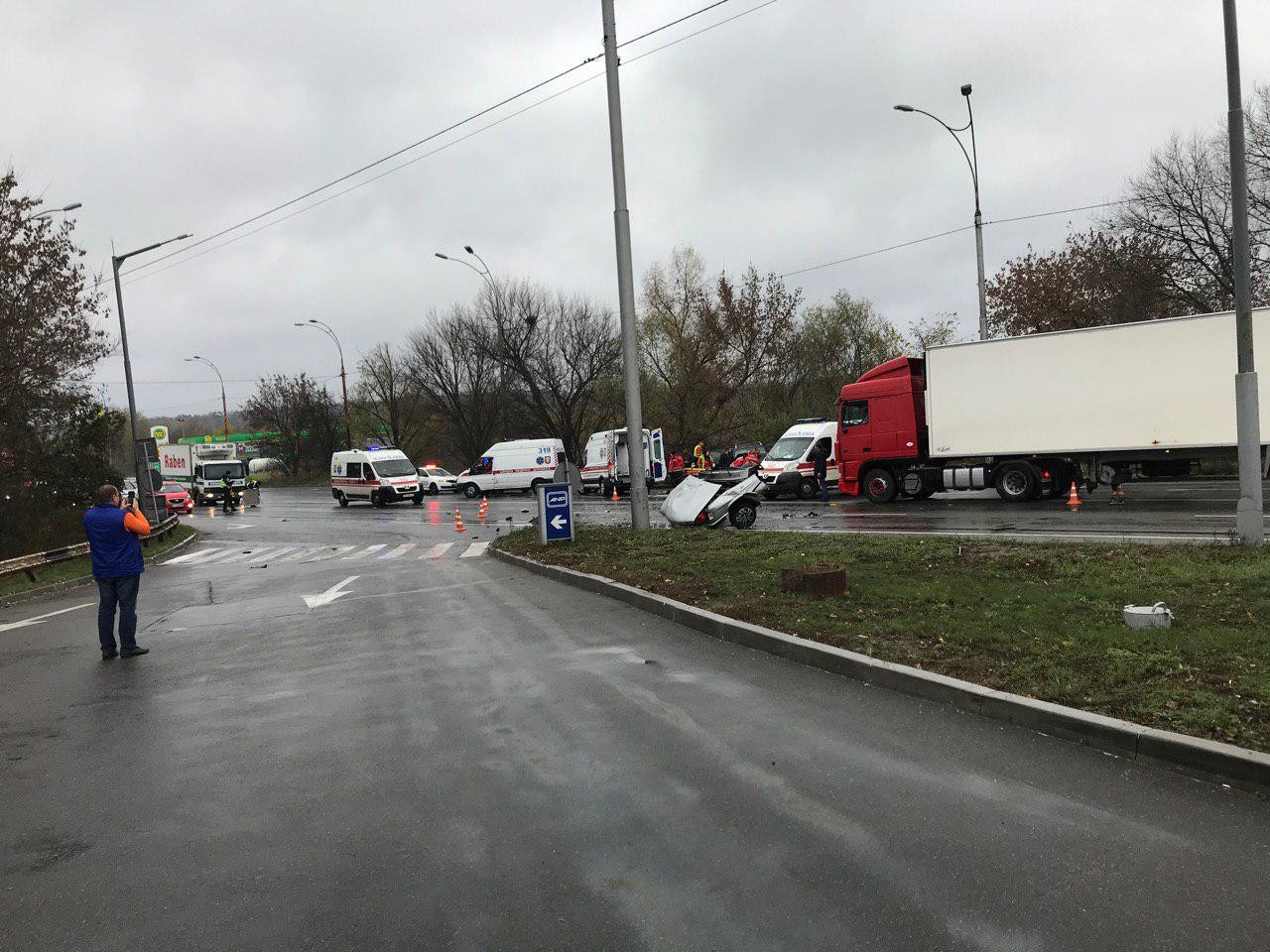 Вранці в неділю, 3 листопада, на вулиці Заболотного в Києві зіткнулися два автомобілі: один з них розірвало на частини.