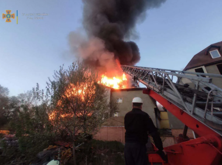 У п'ятницю, 6 травня, у Києві, в Голосіївському районі, по вул. Бродівській, о четвертій ранку сталася пожежа. Займання відбулося на другому та третьому поверхах триповерхової будівлі, а пізніше вогонь розповсюдився на покрівлю та перший поверх. Про це повідомили у Державній службі з надзвичайних ситуацій.