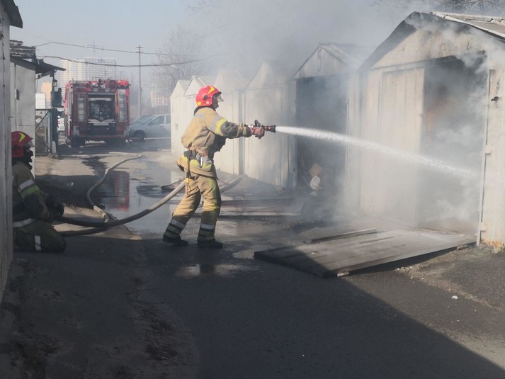 У Києві сталася велика пожежа: вогонь із сухостою перекинувся на гаражі (фото, відео)