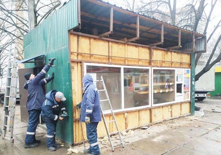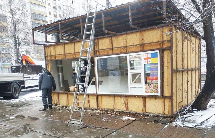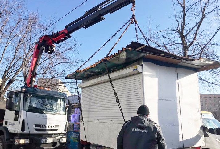 За перші три дні цього тижня, з 3-го по 5 лютого, комунальним підприємством «Київблагоустрій» та деякими власниками тимчасових споруд було прибрано 72 незаконних МАФів.