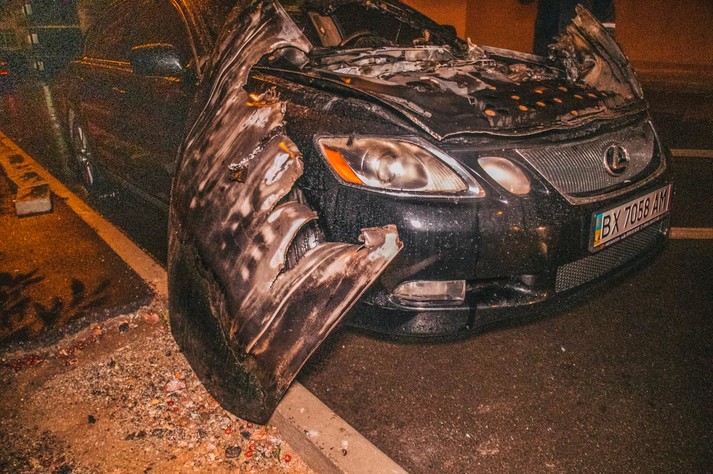 За характером пошкоджень капота - він буквально злетів з машини - правоохоронці припускають, що причиною пожежі міг стати вибух.