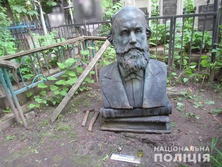 Подія сталася у червні поточного року. Тоді працівники Байкового кладовища побачили чоловіків, які демонтували бюст на могилі. Одному зі зловмисників вдалося втекти від охоронців, іншого затримали та викликали правоохоронців. Поки слідчі Голосіївського управління поліції документували факт наруги над могилою, дільничні офіцери поліції розшукали втікача-правопорушника.