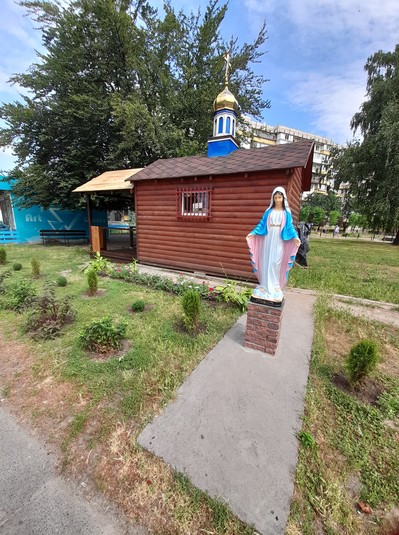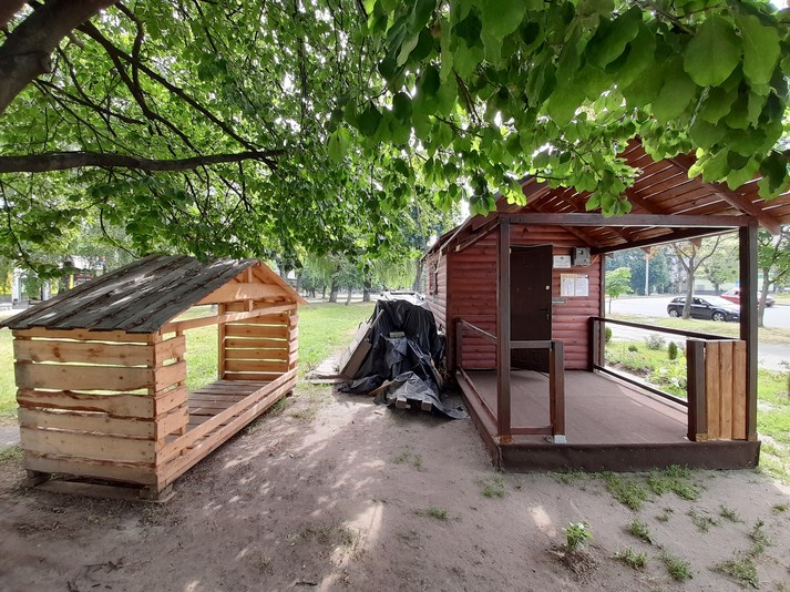 «Перед Різдвом він втулив до МАФу вертеп, який не розбирав до весни, а влітку переніс під дерево далі від дороги. Нещодавно ближче до дороги виніс статуетку, а буквально на днях зробив широкий ґанок із дахом», – повідомляють активісти.