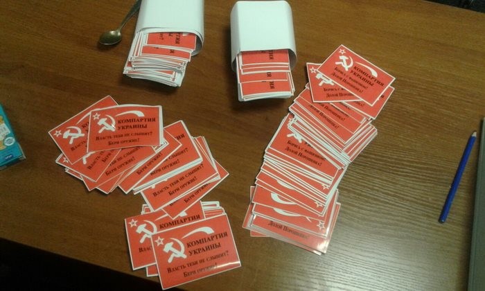 Слідством також отримано інформацію про причетність до антидержавної діяльності представників Комуністичної партії України. Співробітники спецслужбу провели низку санкціонованих обшуків у Києві та області, зокрема за місцями проживання керівників компартії. Під час слідчих дій правоохоронці виявили агітаційні матеріали із забороненою символікою комуністичного тоталітарного режиму, що планувалися на замовлення російських кураторів для публічного поширення 9-го травня, щоб дестабілізувати суспільно-політичну обстановку в державі та спровокувати силові сутички між активістами громадсько-політичних об’єднань.
