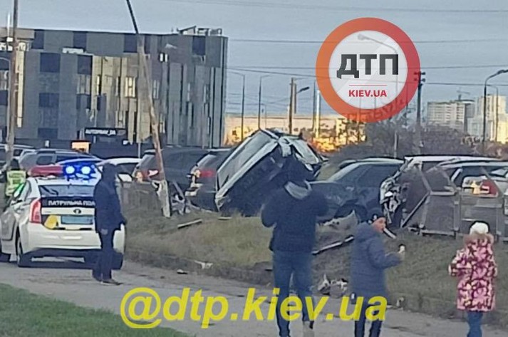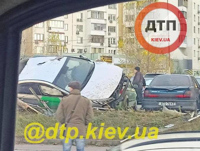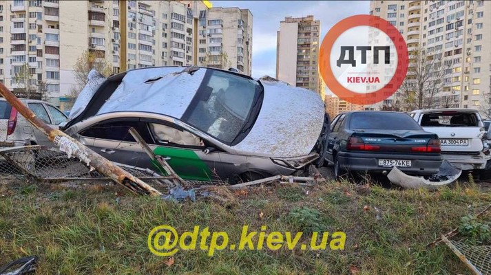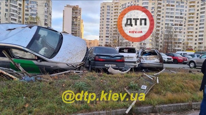 За даними dtp.kiev.ua, під час перевороту таксист зачепив дві машини, а на стоянці пошкодив ще чотири автомобілі.