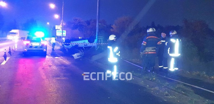 Зазначається, що у салоні під час аварії, крім водія перебував пасажир. Двох чоловіків було госпіталізовано у тяжкому стані.