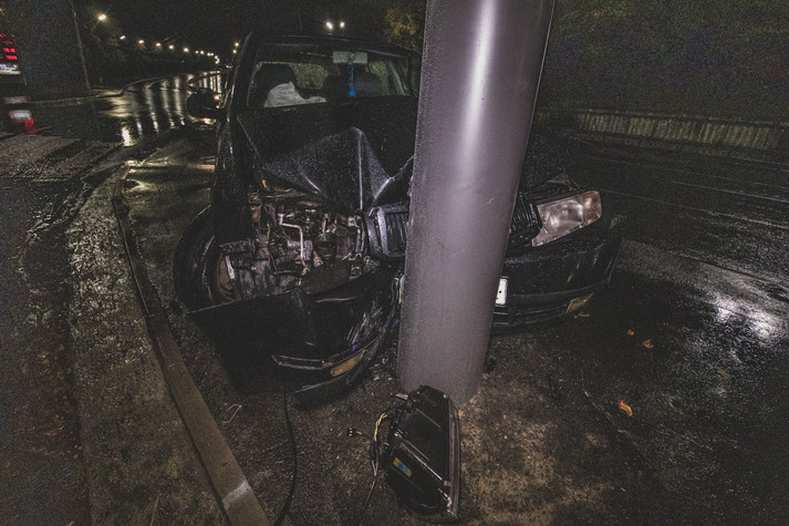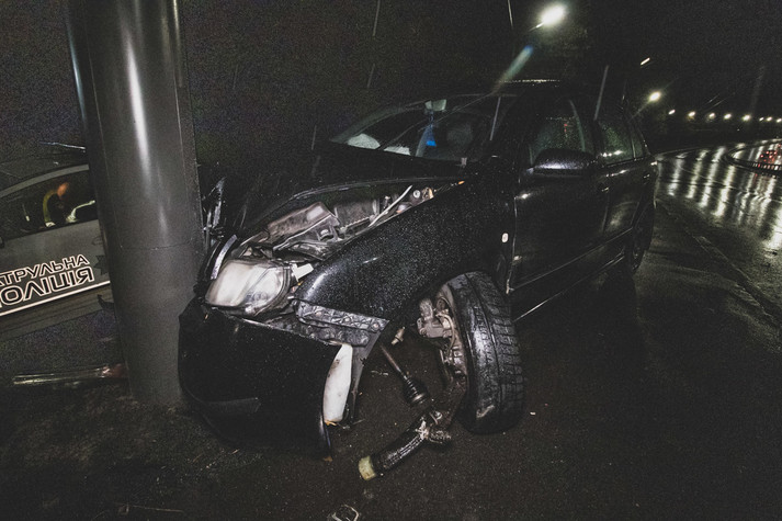 У Києві таксі з двома пасажирами влетіло у стовп (фото, відео)