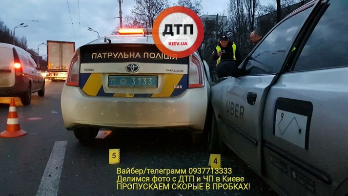 «Легковий автомобіль таксі Uber (з європейською реєстрацєю) врізався в поліцейську Toyota Prius. Від удару в «японцеві» спрацювали подушки безпеки. Постраждали 2-е поліцейських, дівчину-копа госпіталізували», - йдеться у повідомленні.
