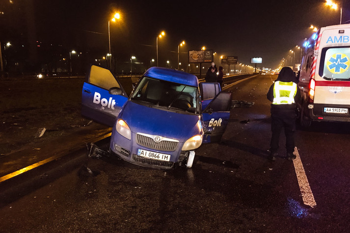 У неділю, 22 грудня, на Кільцевій дорозі у Святошинському районі Києва сталася ДТП з постраждалими. Зіткнулися автомобілі Skoda Fabia служби таксі Bolt і Subaru Legacy. Одного з водіїв госпіталізували в лікарню.