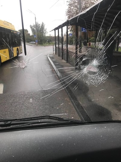 На зупинці «Кирилівська церква» у напрямку Троєщини з автобуса вийшов хлопець спортивної статури, дістав з куртки молоток і кілька разів ударив ним по лобовому склу автобуса. У цей час в автобусі перебували пасажири. Про це стало відомо від користувача мережі, який став свідком інциденту.
