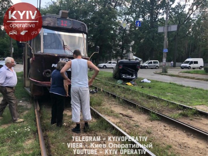У Києві трамвай в'їхав у легковик: постраждала дитина (фото)