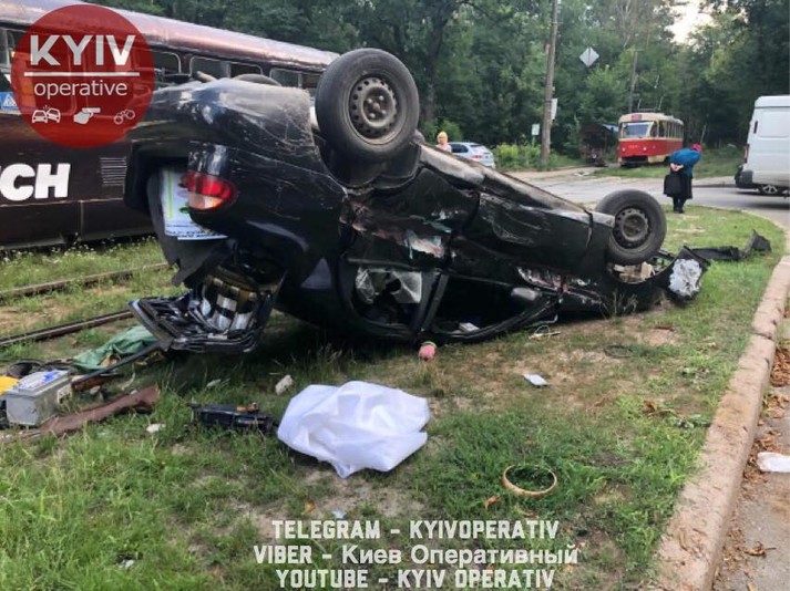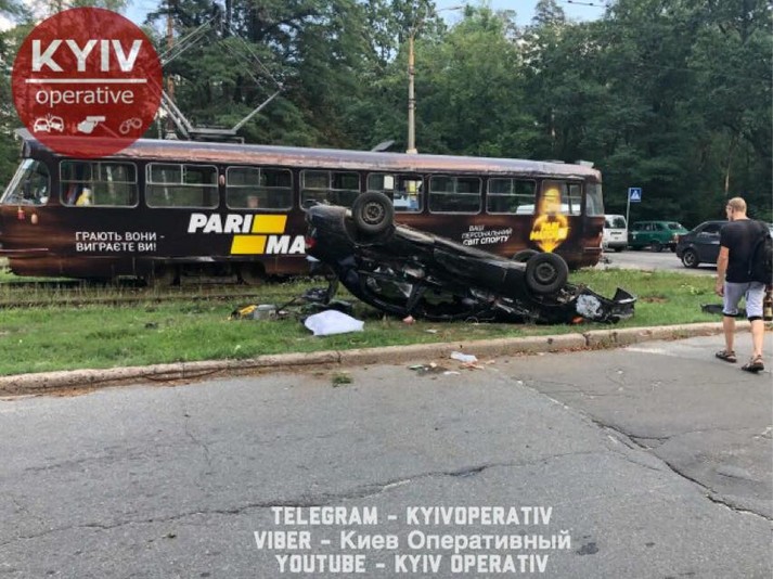 У вівторок, 31 липня, у Пущі-Водиці в Києві сталася серйозна ДТП: зіткнулися трамвай маршруту №12 і автомобіль Daewoo.