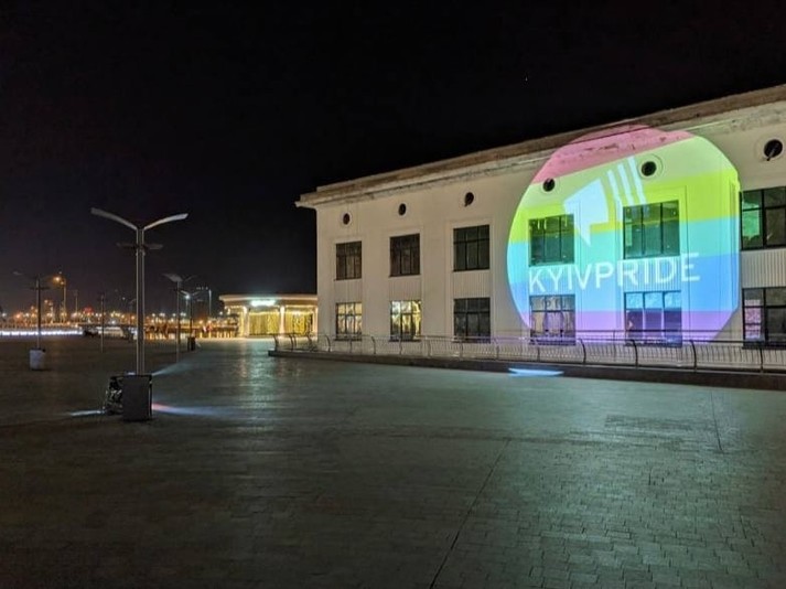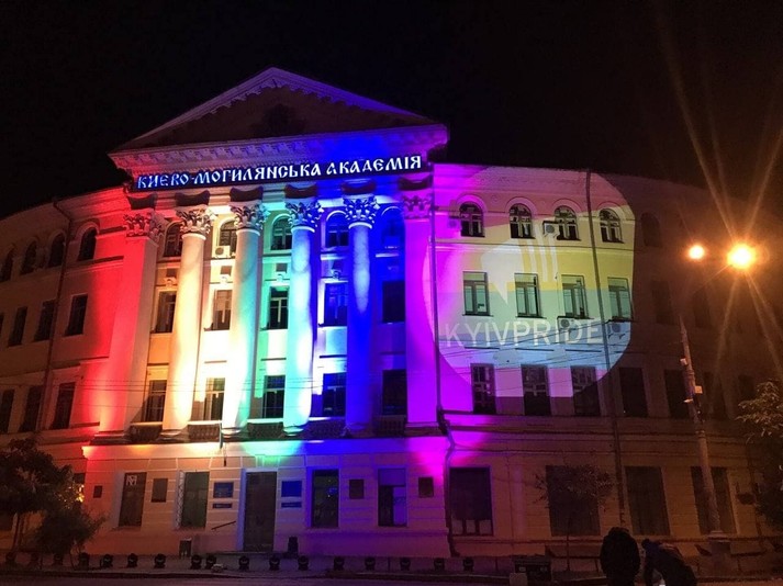 До Всесвітнього дня камінг-ауту,11 жовтня, організація КиївПрайд підсвітила у кольори прайд-прапора Річковий вокзал, будівлю Міністерства зовнішніх справ України та Києво-Могилянську академію. Про це повідомляється на сторінці КиївПрайду у Facebook.