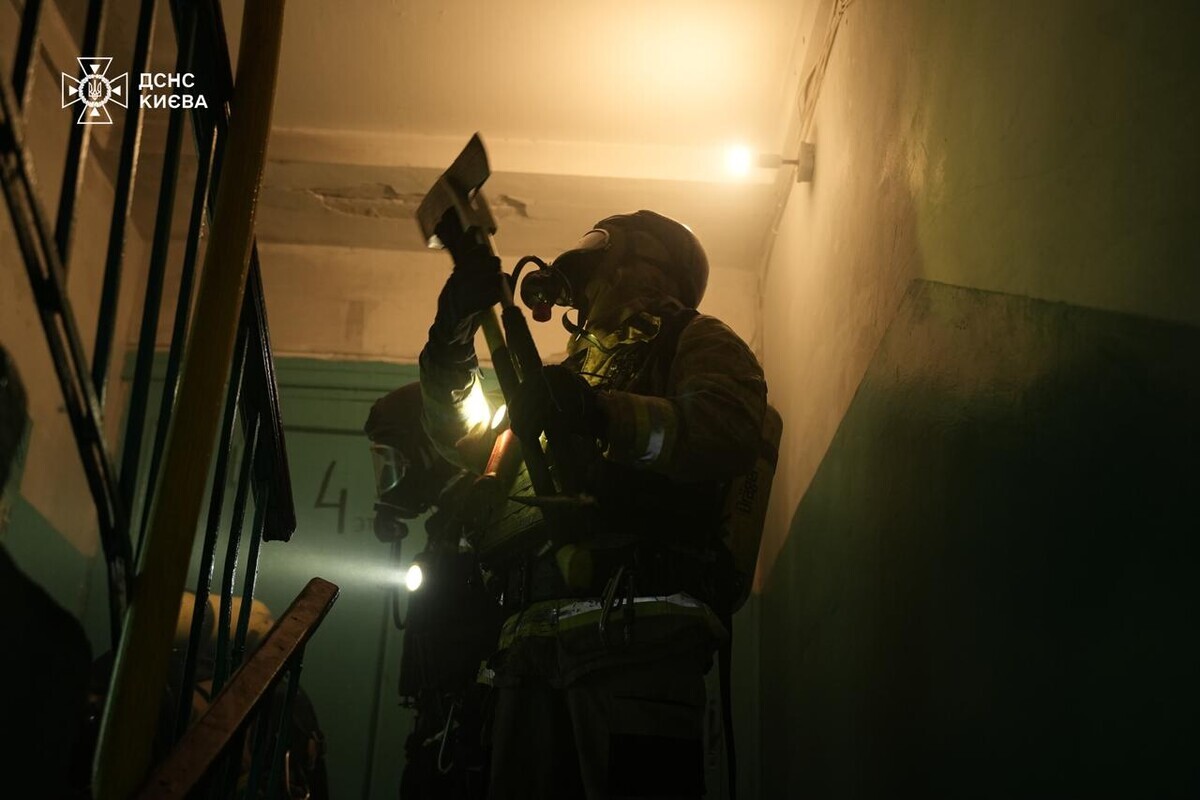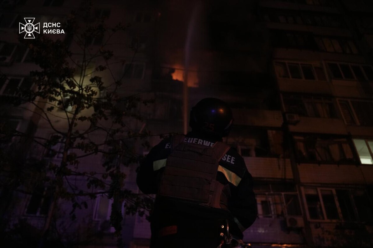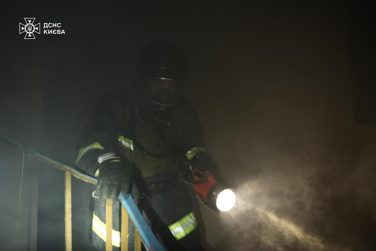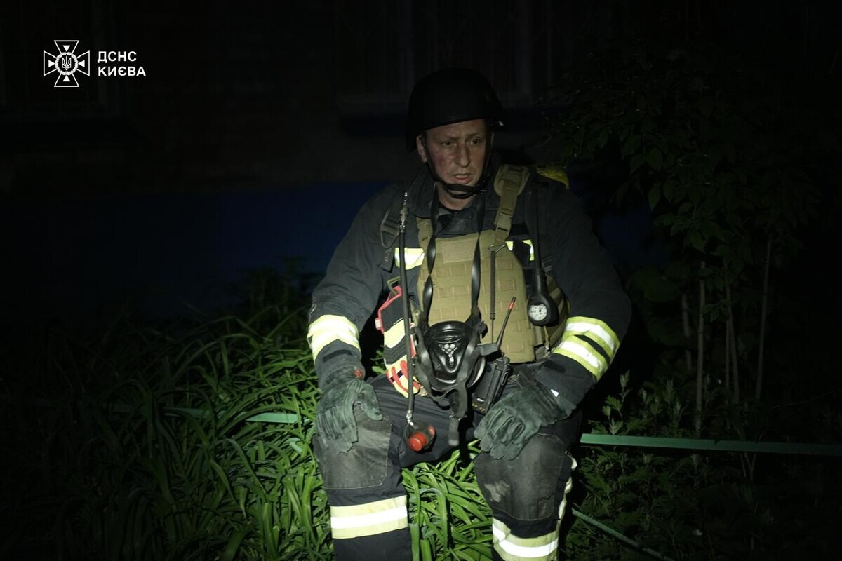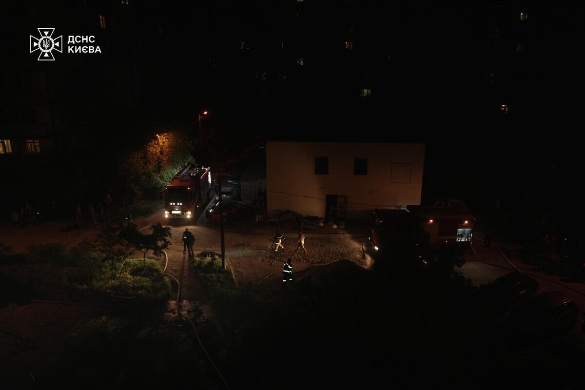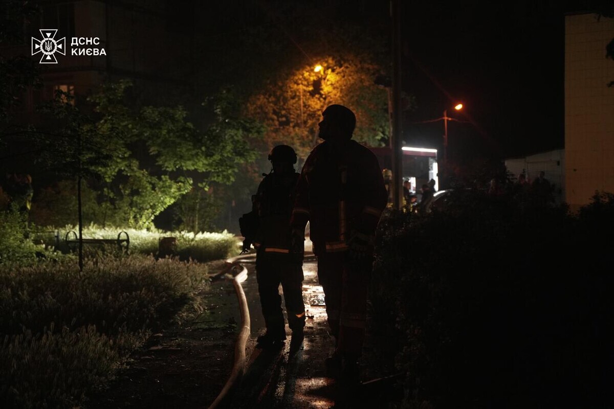 У Києві триває ліквідація наслідків нічного обстрілу: кадри від ДСНС