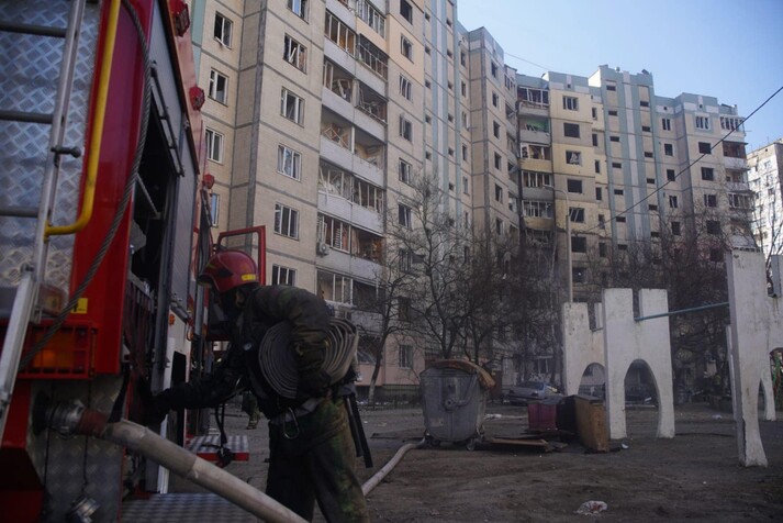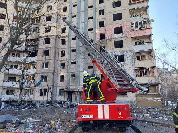 Внаслідок потрапляння уламків снаряду виникла пожежа у житловому будинку Святошинського району столиці. Про це повідомляє Головне управління ДСНС України у м.Києві.