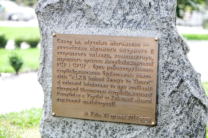 У середу, 18 липня, у Києві відбулося урочисте відкриття скверу та пам’ятника азербайджанському артисту Мусліму Магомаєву. У заході взяли участь міністр культури Азербайджанської Республіки Абульфас Гараєв, міністр культури України Євген Нищук, заступник голови КМДА Олександр Спасибко, а також заслужені артисти з Азербайджану, Узбекистану, Казахстану, України та інших країн, які знали та любили співака, а також кияни.