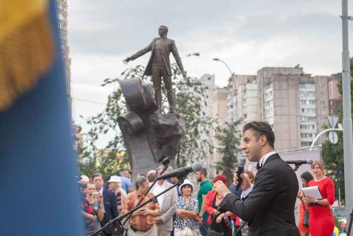 «У рамках відзначення 75-річчя від дня народження всесвітньо відомого оперного й естрадного співака, композитора, народного артиста Мусліма Магомаєва, за ініціативою та за всебічної підтримки Посольства Азербайджанської Республіки в Україні у місті Києві відкрито Сквер імені Мусліма Магомаєва за адресою: перехрестя проспекту В. Чорновола та вулиці Січових Стрільців та пам’ятник видатному митцю», – розповів Спасибко.