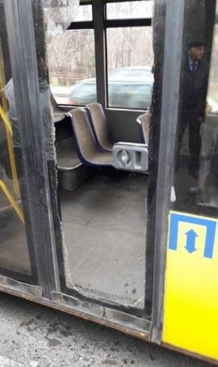 Водій намагався закрити двері і в цей момент скло на дверях тріснуло