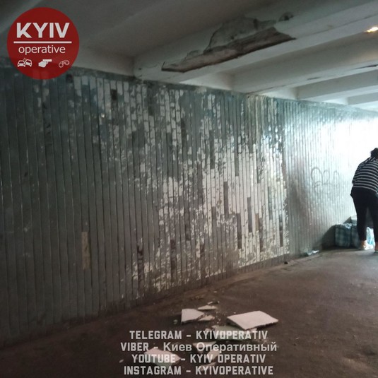 У понеділок, 12 липня, вранці у підземному переході неподалік станції метро «Героїв Дніпра» обвалився шмат бетону зі стелі. Про це повідомляє «Київ оперативний».