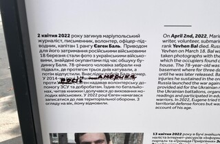«На стендах виставки зібрано історії та світлини журналістів, операторів, фотографів, фіксерів, які загинули, були поранені або опинилися в полоні з 24 лютого 2022 року. Виставка охоплює як історії журналістів, які постраждали під час виконання професійних обов'язків, так і журналістів, які загинули як військовослужбовці, захищаючи нашу країну в лавах ЗСУ», – повідомляє ІМІ.