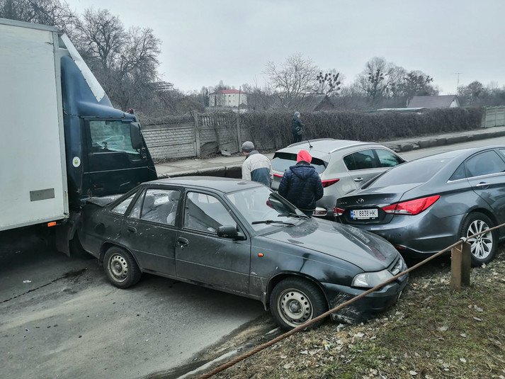 Вантажівка без гальм не встигла набрати велику швидкість, і ніхто з учасників аварії серйозно не постраждав.