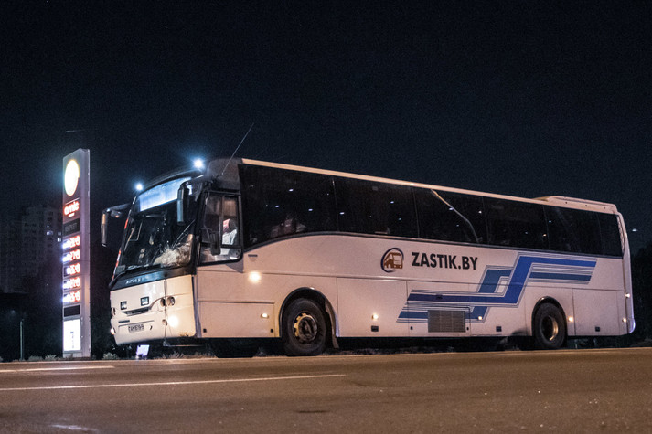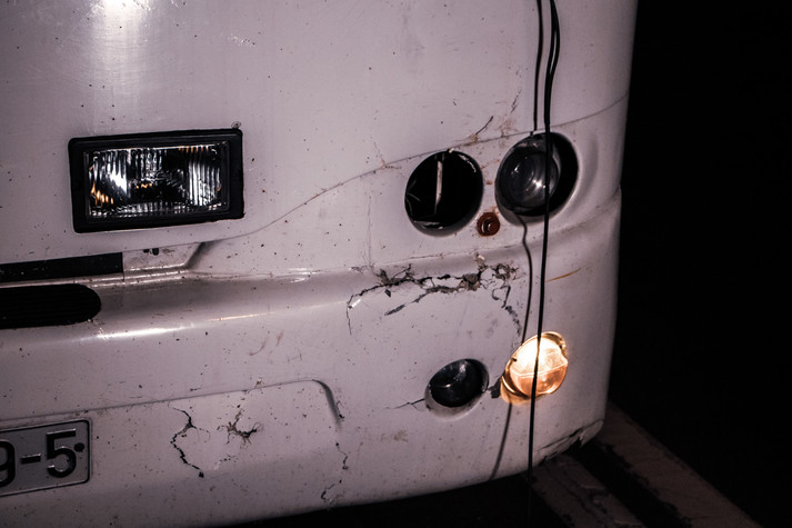 Водій автобуса повідомив, що він не міг уникнути зіткнення з людиною, так як все сталося раптово і від удару об вантажний автомобіль тіло підлетіло дуже високо.