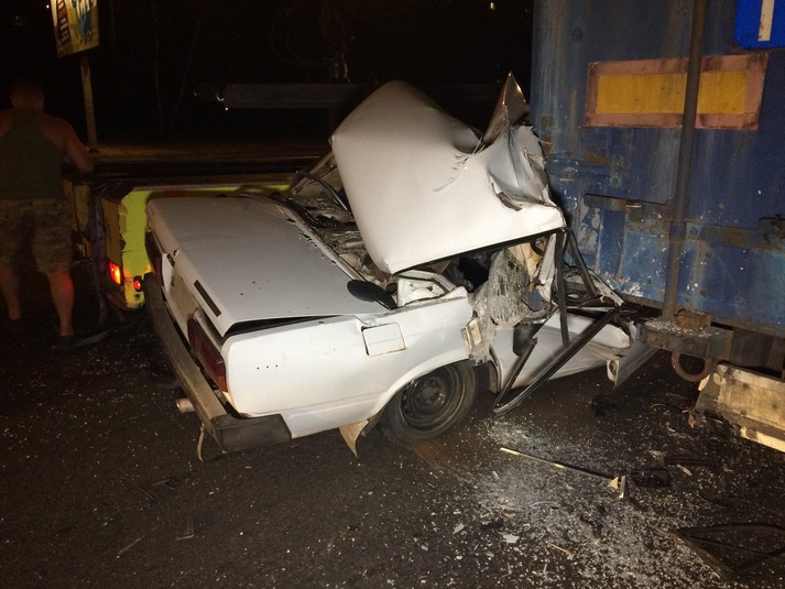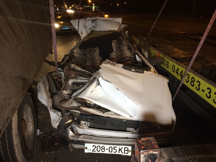 У Києві «ВАЗ» влетів у фуру, залишившись без даху (фото, відео)