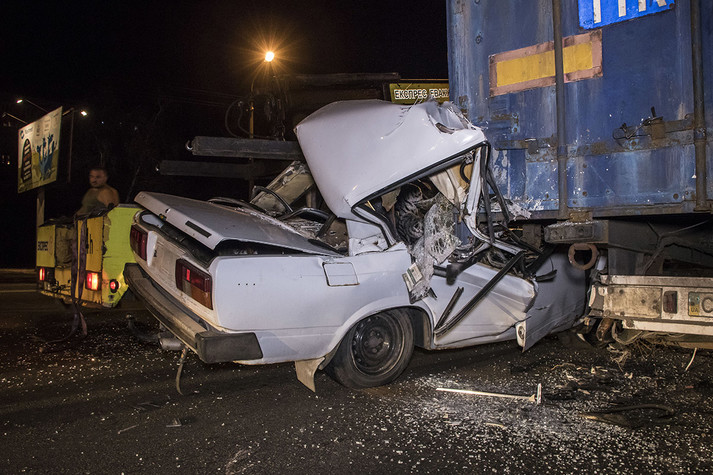 У понеділок, 18 червня, в Києві на вулиці Братиславській автомобіль «ВАЗ» в'їхав у припарковану фуру.