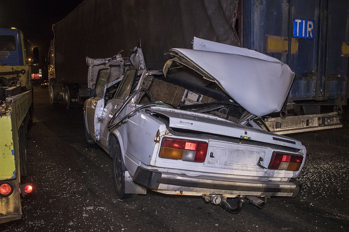 За словами правоохоронців, водій «ВАЗа» їхав по Братиславській в сторону станції метро «Чернігівська» і, не встигнувши перебудуватися, врізався у фуру Volvo, що стояла на узбіччі.